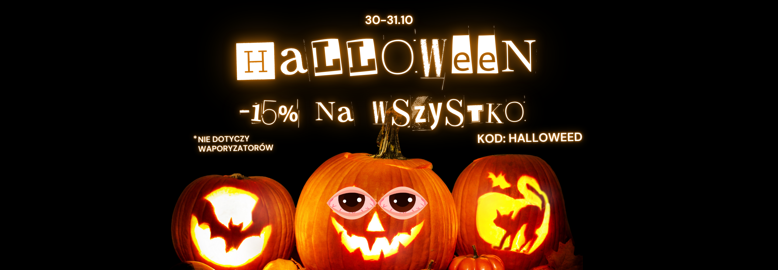Promka obowiązuje na naszej stronie internetowej (wystarczy wpisać kod rabatowy w koszyku przy składaniu zamówienia) i we wszystkich sklepach stacjonarnych. (30-31.10)
