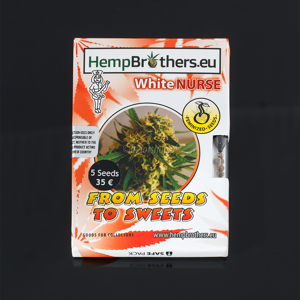 White Nurse swoją nazwę zawdzięcza szczytom, które w końcowej fazie kwitnienia są gęsto obsypane żywicą. THC na poziomie 20% oraz niepowtarzalny, soczysty owocowy aromat, czynią z niej świetną odmianę dla zwolenników hybryd indica-sativa. Dodatkowym atutem jest wysokość jaką osiąga (do 70 cm), więc idealnie nadaje się do niewielkich upraw indoor.